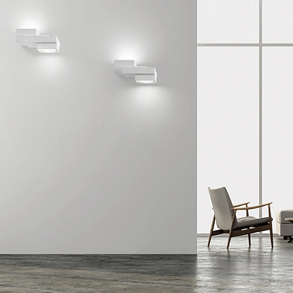 Sibari è una lampada da parete a due luci up/down dallo stile semplice ed essenziale. Si caratterizza per la struttura in gesso e la forma quadrata.