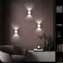 Applique di design ideale per creare una luce d'atmosfera in ogni ambiente. Perfetta per illuminare pareti di arredamenti moderni di abitazioni private, locali, hotel, negozi. Composta per metà da metallo bianco e per metà da lente trasparente è disponibile in due versioni: bianco e nero. Versione in nero dimmerabile. Materiali: alluminio + vetro. Grado di protezione IP54. Driver incluso.