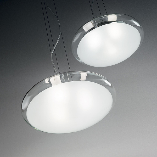 Smarties è un lampadario minimal ideale per illuminare la zona living della casa! La montatura è in metallo, mentre il diffusore è in vetro trasparente e sabbiato nella zona centrale. I cavi in acciaio hanno una lunghezza regolabile con dispositivi ferma cavo automatici.