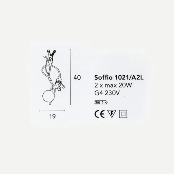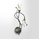 Applique 2 luci, realizzata da Bellart, struttura in metallo forgiato a mano e diffusori in vetro lavorati a manoe decorati con murrine ambra.