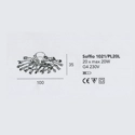 Plafoniera 20 luci, realizzata da Bellart, struttura in metallo forgiato a mano e diffusori in vetro lavorati a manodecorati con murrine ametista.