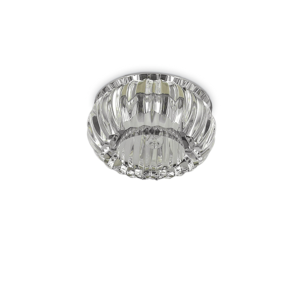 Soul, un faretto da incasso fisso con montatura in metallo cromato. L’elemento decorativo esterno in cristallo molato trasparente lo rende prezioso permettendo un interessante gioco di luci. Si addice a diversi ambienti: dalla zona living di abitazioni private alle sale di strutture ricettive.