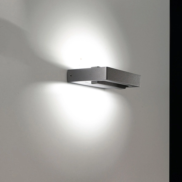 Applique perfetta per illuminare gli ambienti esterni, disponibile in due colori: bianco opaco o grigio scuro. Il diffusore è in policarbonato e la fonte luminosa a LED. Grazie alla sua versatilità si può posizionare in diversi contesti, dal giardino alla camera da letto.