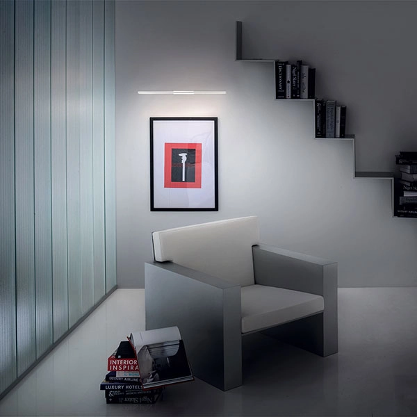 Applique minimal ed essenziale dedicata all’illuminazione di specchi e quadri. La montatura è realizzata in ABS con finiture: bianco, cromo o brunito. Il diffusore è in policarbonato. Soluzione imperdibile per ambienti arredati in stile moderno e contemporaneo.