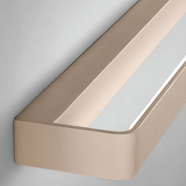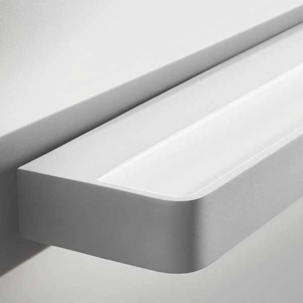 Lampada a parete moderna adatta per ogni ambiente della casa. Il corpo luce è in alluminio verniciato bianco opaco. il diffusore è in policarbonato satinato. Perfetta per illuminare diverse zone della casa come l'ingresso, i corridoi e le scale. Disponibile in due finiture: bianco opaco e sabbia.