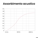 FONOASSORBENTE: 12 lamelle di poliuretano espanso autoestinguente, densità 30 kg/m3, reazione al fuoco UL94-HF1, spessore 4 cm, finitura con smalto colorato.