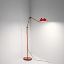 Topo è una lampada da terra di grande design nata da un’ispirazione automobilistica: le fessure sulla calotta metallica ricordano le prese d’aria delle auto sportive anni Sessanta, mentre la forma del paralume corrisponde all’inviluppo della classica lampadina E27 accolta al suo interno, come una carrozzeria sul motore sottostante. I bracci snodabili in metallo permettono di estendere o ritrarre la lampada a piacimento. Calotta in metallo, impugnatura in materiale termoisolante, bracci e asta in metallo, base in metallo con rifinitura esterna in polietilene.