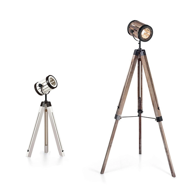 Originale lampada da terra di Ideal Lux che illumina la zona living con un tocco di design in perfetto stile vintage. La luce di questa lampada vi segue in ogni spostamento grazie al diffusore orientabile. Può essere usata per creare atmosfera anche nella zona notte della casa e in locali, ristoranti oppure hotel. Il treppiede e il diffusore sono in listelli di legno naturale invecchiato. L'altezza è regolabile grazie a raccordi in metallo verniciato nero. Il diffusore è orientabile e ha dettagli in metallo verniciato nero opaco.