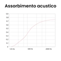 FONOASSORBENTE: 12 lamelle di poliuretano espanso autoestinguente, densità 30 kg/m3, reazione al fuoco UL94-HF1, spessore 4 cm, finitura con smalto colorato.