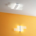 Un movimento, un incastro di elementi geometrici che a parete o a soffitto giocano con il disegno della stanza, arredandola con la propria fisicità. La versione 2.0 di Triad presenta una montatura in metallo verniciato bianco, diffusori a incastro in vetro sabbiato e sorgente LED integrata.