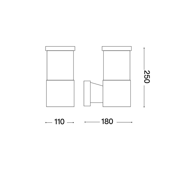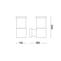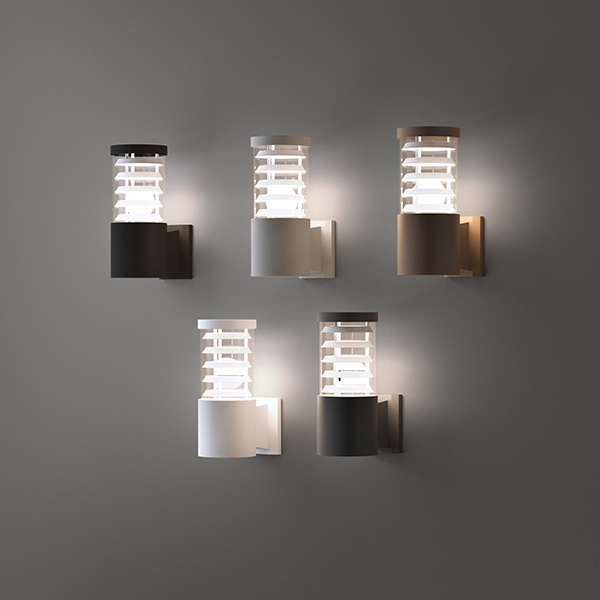 Applique da esterno con corpo luce in alluminio pressofuso rifinito in vernice di colore antracite, bianco, coffee, grigio o nero. Diffusore in vetro pirex con elementi interni in alluminio.
