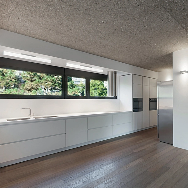 Tu-Top è un’applique lineare e minimal che illumina con eleganza diversi ambienti della casa. Si può posizionare nella zona living, nelle zone di passaggio come il corridoio e anche in camera da letto... questa lampada non conosce limiti! Noi la consigliamo anche per l’illuminazione di spazi commerciali. Il diffusore è in PMMA opale, mentre il corpo e i tappi laterali sono in metallo verniciato bianco goffrato. Grazie al protocollo DALI, si può controllare l’intensità della luce per ottenere un’atmosfera perfetta.