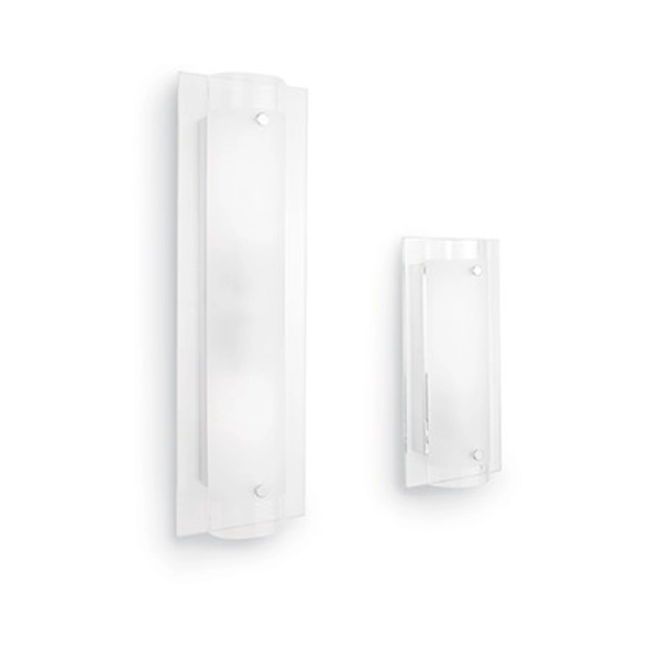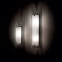 Tudor è un'applique disponibile in diverse misure, tutte con base in metallo cromato, diffusore composto da cornice in vetro trasparente molato e mezzo tubo in vetro pirex sabbiato nella parte centrale.