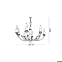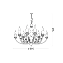 Sospensione scenografica dallo stile classico per illuminare zone living di abitazioni oppure hall di strutture ricettive dall’arredamento vintage. Montatura in metallo dorato con dettagli nero opaco. Elementi decorativi in cristallo molato. Copricatena in velluto.