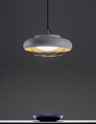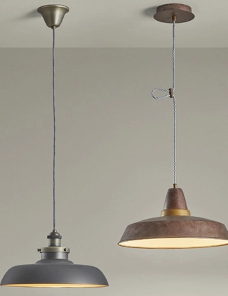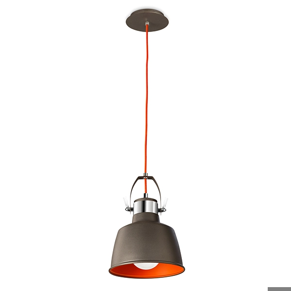 Sospensione vintage e retrò ideale per illuminare tavoli o banconi della casa o di locali e ristoranti. La struttura è in acciaio e la finitura è in grigio urbano e arancione.