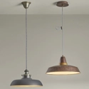 Lampada a sospensione dalle linee vintage adatta per illuminare tavoli di locali e ristoranti dallo stile rustico. La struttura è in acciaio disponibile in ambra dorata e patinato. Lampadina non inclusa.