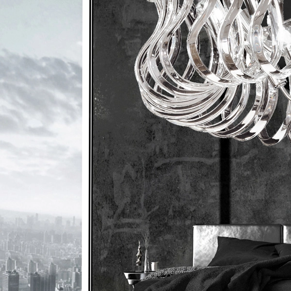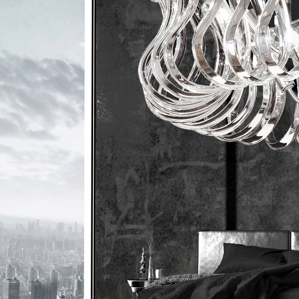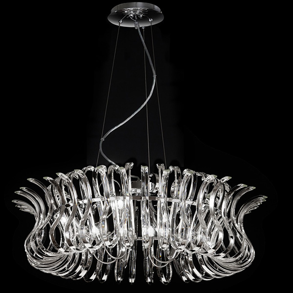 Fili sinuosi di cristallo che ricordano la forma di un’onda. Wave è una sospensione elegante e preziosa consigliata in modo particolare per chi cerca lampadari scenografici da posizionare in ampi spazi. Effetti di luce originali si sprigionano da questo lampadario creando un’atmosfera unica. Disponibile in tre misure con diametro: 80, 65, 50 cm. Struttura in metallo, corpo luce realizzato in vetro. Lampadine escluse.